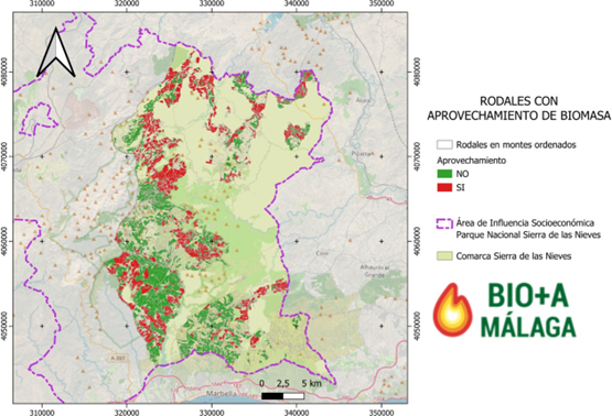 Figura 2. Distribución de rodales con aprovechamiento preferente de biomasa forestal en el Parque Nacional y Natural de Sierra de las Nieves.